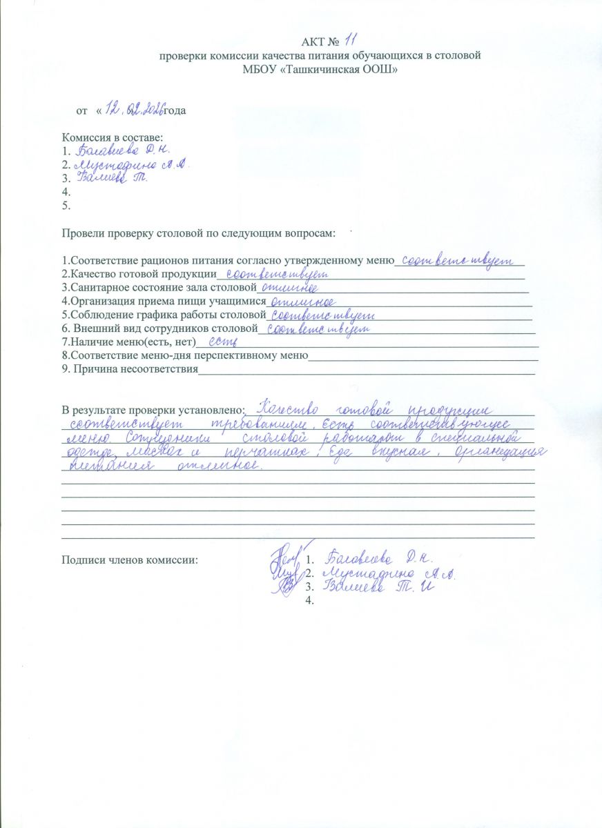 Акты проверки школьной столовой 2025-2026