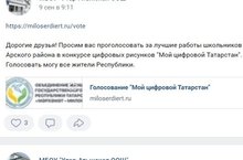 Дорогие друзья! Просим вас проголосовать за лучшие работы школьников Арского района в конкурсе цифровых рисунков "Мой цифровой Татарстан". Голосовать могу все жители Республики