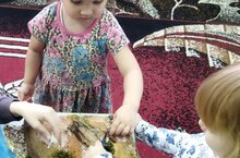 Тәрбияче апалары балаларны әкиятләр сөйләргә өйрәтә.