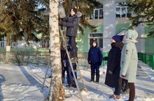 Укучылар ясап элгән җимлекләр кыш буе кошларыбызны сыйлый. Укучылар һәр көн аларга җимнәр сала.
