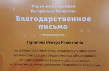 На форуме юных граждан педагог - организатор нашей школы В. Р. Гарипова была награждена Благодарственным письмом Министерства по делам молодёжи Республики Татарстан. Поздравляем!!!