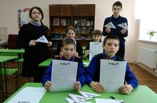 С целью расширения знаний учеников о героических страницах истории нашего Отечества, воспитания патриотизма, гражданственности, чувства гордости и уважения к историческому прошлому Родины в школе были проведены классные часы. Волонтеры раздавали письма в виде фронтовых треугольников, где была информация о Героях – земляках и их подвигах.