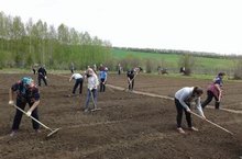 "Язның бер көне-ел туйдыра"-ди халык мәкале. Шушы мәкальгә тугры калып, мәктәп яны тәҗрибә участогында язгы эшләр башланды. Җирне көзге чүп-чардан чистартып, эшкәртеп, чәчү эшләре бара.