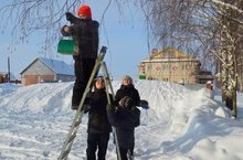 Салкын кышта кошлар ач булмасыннар...Укучыларыбыз җимлекләрне даими кардан чистартып, җимнәр салып торалар.