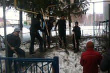 4 апрель көнне мәктәп территориясендә өмә үткәрелде. Әлегә көннәр салкын тору сәбәпле, карлар эреп бетмәгән. 5-9 класс укучылары һәм укытучылар дәресләрдән соң карлар тараттылар.