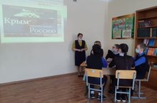17 март көнне мәктәбебездә " Кырымның Россиягә кушылуы" турында сыйныф сәгатьләре булды. Укучылар белән, Кырым Республикасының тарихы, халкы, тарихи һәйкәлләре, төрле яулаучылар белән күп еллык көрәшүе, кырымлыларның Бөек Ватан сугышында катнашуы, Севастопольне саклау, Россия өчен ярымутрауның мөһимлеге турында әңгәмәләр үткәрелде, презентацияләр каралды. Бүген гражданлык-патриотик тәрбия аерым әһәмияткә ия, ул тарихи фикерләүне формалаштыра, туган ил тарихын өйрәнүгә кызыксыну уята, укучыларда патриотизм хисе тәрбияли.