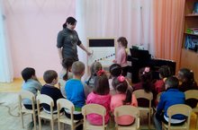 Под руководством музыкального руководителя дети изучали нотную грамоту: нотный стан, скрипичный ключ, расположение нот. Знания закрепили игрой на металлофоне.