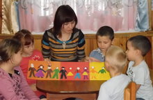 Вот об этом воспитатель и беседовал с детьми. А в конце разговора - аппликация "Праздничный хоровод".