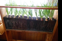 В детском саду ежегодно ставят опыты в уголке экспериментирования "Домашний огород". Вместе с детьми воспитатель Альбина Рашитовна сажает лук, пшеницу. В процессе роста растений выявляется необходимость воды, тепла, солнечного света. А таким длинным корням лука удивляются не только дети, но и их родители!