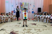 В детском саду прошло мероприятие "В гостях у светофора", на котором дети показали и закрепили свои знания о правилах дорожного движения, научили героя Бома, как правильно переходить дорогу пешком и на велосипеде, что означают дорожные знаки.