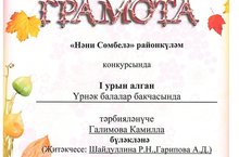 Безнең тәрбияләнүче Галимова Камилла "Нәни Сөмбелә" районкүләм конкурсында 1 урын алган. Котлыйбыз!!!