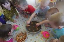 С воспитанниками младшей группы на занятии по ознакомлению с окружающим миром посадили лук, закрепили представления о луке, особенностях внешнего строения, учились находить "донце" с корнями и верхушку. Занятие способствовало формированию представления детей о необходимости света, тепла, влаги почвы для роста луковиц. Ежедневно ухаживая за луком, дети учатся видеть результат своего труда.