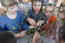 В конце февраля, для проекта «Зелёные веточки», в старшую группу принесли веточки березы, которые поставили в воду. И вот на них проросли листочки. Проращивание листьев на веточках формирует бережное отношение к окружающему миру природы, совершенствует знания детей о том, что дерево – живой организм, и об условиях, необходимых для его существования в природе (вода, тепло, свет); развивает интерес к познавательной деятельности, наблюдательность, способность экспериментировать, делать выводы; развивает эстетическое чувство, чувство радости и восхищения от красоты природы.