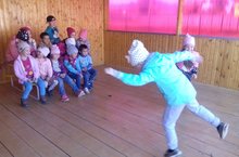 Воспитанники подготовительной к школе группы показали детям младшей группы сказку "Куян малае". Сказка рассказывает, что во всем нужно слушаться взрослых, а то может cлучиться беда. Маленьким зрителям очень понравилось.