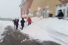 Все сотрудники дружно вышли на уборку снега на территории детского сада. Холодно, ветрено, но весело и задорно!