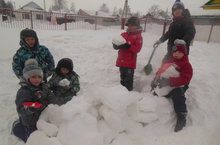 Сегодня воспитанники старшей группы решили построить снежную крепость. Ребята работали дружно, весело. Хорошо зимой!