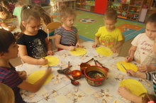 Воспитанники подготовительной группы познакомились с элементами хохломской росписи. Дети узнали, что есть село Хохлома, что росписью украшают различные изделия из дерева: тарелки, миски, доски, шкатулки и ложки.