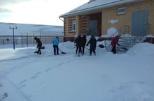 После новогодних выходных выпало много снега и все сотрудники детского сада дружно пришли на уборку территории, игровых площадок.