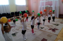 Воспитанники младшей группы на занятии физкультуры выполняли упражнения с мячом. Такие упражнения развивают глазомер, ловкость, регулируют силу и точность броска, нормализуют эмоционально-волевую сферу, что особенно важно для малоподвижных, так и для гипервозбудимых детей.