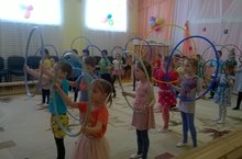 Воспитанники старшей группы на занятии музыки выполняли танцевальные движения с обручем под вальс композитора И.Штрауса. Движения с обручем развивают координацию, ориентировку в пространстве, доставляют детям большое удовольствие и радость.