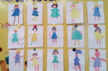 Воспитанники средней группы учились рисовать фигуру человека, передавая простейшие соотношения по величине: голова маленькая, туловище большое; девочка одета в платье; учились изображать простые движения, закреплять приемы закрашивания красками.