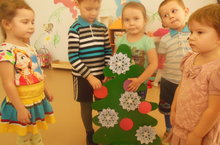Воспитанники старшей группы отправились в путешествие по континентам мира, по дороге которой знакомились с жителями разных стран и с их танцами. В конце этого пути пришёл Дед Мороз и своим волшебным посохом зажёг ёлочку. Вокруг ёлочки дети пели песни, водили хороводы, играли с Дедом Морозом. От новогоднего праздника и дети, и взрослые были в восторге.