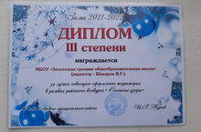 В рамках встречи Нового проводился ежегодный районный конкурс на лучшее зимнее оформление «Снежные узоры». По итогам конкурса за лучшее новогоднее оформление территории школа награждена Дипломом 3 степени.