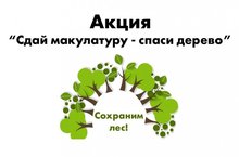 С 19 марта в школе стартовала природоохранная акция «Собери макулатуру – спаси дерево!». Основная цель акции: стремление к сохранению окружающей среды и ресурсосбережению, бережное отношение к природе. За период проведения акции обучающимся необходимо собрать максимально возможное количество макулатуры. Сбор макулатуры производится в виде газет, книг, бумаги, картона. Каждый может сдать макулатуру - это пусть небольшой, но важный вклад в сохранение живой природы.