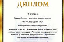 Подведены итоги муниципального этапа Всероссийского конкурса "Разговор о правильном питании". Привлечь учителей, родителей к решению проблем здоровья подрастающего поколения, развить интерес у учащихся к проектной деятельности в сфере здоровья и ЗОЖ было несложно. Родители, учителя, учащиеся школы активно приняли участие в конкурсе. В номинации семейных фотографий "Вкусная картина" победителями в районном этапе признаны семьи Аскаровых, Кочуровых; в номинации детских проектов "Пишем кулинарную книгу" Магсумов Айзат(3 кл.) удостоился Диплома III степени, в номинации методических разработок по программе "Разговор о правильном питании" учитель начальных классов высшей квалификационной категории Шаймарданова Т.И. награждена Дипломом II степени. Школа благодарит всех участников конкурса за творческую находчивость и оригинальность. Желаем дальнейших творческих идей.Молодцы!!!