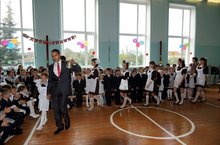 Право подать первый звонок на первый школьный урок было представлено ученику 11 класса Хуснутдинову Ранилю.