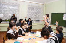 Учитель английского языка Г.И.Гатиятова показала урок на тему: «Естественная и созданная человеком среда обитания. Словообразование:суффиксальный способ». Цель урока: закрепление и совершенствование у учащихся 8б класса полученных лексических навыков по теме «Environment», отработка умений и навыков по их применению. Образовательная задача: активизировать, закрепить лексику, продолжать формировать у учащихся навыки общения, сформировать навыки словообразования. Развивать у учащихся навыки устной речи, способствовать развитию критического мышления, развитию памяти. Формировать умение работать в коллективе и слушать друг друга. На своем уроке Гузель Ильдусовна использовала структуры: SINGLE ROUND-ROBIN, RELLY-ROBIN, CORNERS (TIMED PAIR SHARE), JOT TOUGHTS, TIC-TAC-TOE.