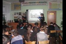 Гаянова Э. и Сабирова Д. очень интересно и содержательно рассказали о годах учебы А.С. Пушкина в лицее, о друзьях поэта. Использован богатый материал: презентация, выставка книг, стенд с иллюстрациями из произведений писателя.