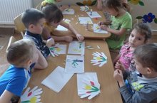 Цель: Развивать воображение, творчество детей. Закреплять знания о форме и величине. Упражнять в аккуратном наклеивании.