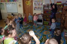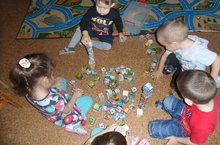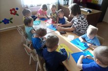 Цель: учить детей отщипывать большие и маленькие комочки от большого куска. Закреплять умение сплющивать шар, сдавливая его пальцами.
