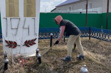 Уборка территории памятника участникам ВОВ 25.04.2025