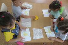 Вот и наступила осень! Но так не хочется расставаться с летом. Мы решили с детишками нарисовать свое собственное солнце, которое будет нас радовать и греть своими лучиками в пасмурные осенние дни. А нарисовали мы его с помощью пальчиковых красок. Такая деятельность не только подняла всем настроение, но и послужила гимнастикой для развития мелкой моторики рук.