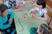 Балалар белән тәҗрибә үткәрдек. Гади җепнең тозлы суда нинди хәләткә килүен күзәттек.