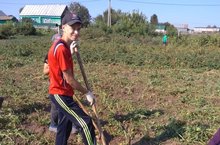 Бүген мәктәп бакчасында бәрәңге алу өмәсе булды