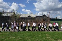 Ел саен укучыларыбыз сугыш кырында көрәшкән бабаларының, туганнарының фотолары белән үлемсез полк акциясендә катнашалар.