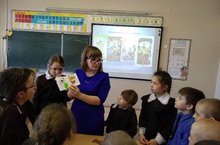 2 апрель - балалар китабы көне. Шул уңайдан китапханәчебез Хисматуллина А. укучыларны китап ясау серләре белән таныштырды, балаларны китапларны сакларга өндәде