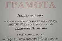 Воспитанники подготовительной группы заняли 3 место в районном конкурсе "Габдулла Тукай әсәрләре буйлап сәяхәт" 29.04.2021