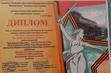 "Күпме яу. сугышлар аркылы, Син җиңеп чыккансың Ватаным" район конкурсы. Иң яхшы патриотик почмак наминациясендә 1 урын 27.03.2025