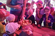 Безнең балалар бакчасының алма бакчасы бар. Анда берсеннән берсе тәмле алмалар үсә. Бүген ул алмалардан балалар да авыз итте.