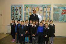 Хокук айлыгы кысаларында участок инспекторы Сабиров Ф.Ф. укучылар белән очрашты. Кич чыгу, төрле урыннарда үзеңне ничек тотарга кирәклеге турында аңлатты. Бигрәк тә кечкенә сыйныф укучылары инспектор абыйларын үз итте.