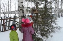 Балалар оешмасының эзтабарлар төркеме мәктәп каршындагы "Кошлар ашханәсе"н һәркөн кардан чистартып, җимнәр салып торалар. 14.01.2015