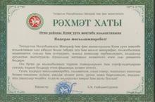 Күәм урта мәктәбе коллективына Татарстан Республикасы Мәгариф һәм фән министрлыгы милли мәгарифне, халкыбызның мәдәниятен саклау һәм үстерүдәге, зыялы шәхесләр тәрбияләүдәге нәтиҗәле хезмәте өчен рәхмәт хаты тапшырды.