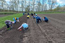 Мәктәп бакчасында язгы эшләр башланып китте. Укучылар, укытучылар ярдәме түтәлләр ясап, төрле культурадагы яшелчәләр утырттык.