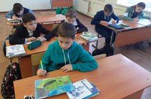 Учащиеся начальных классов в сельской библиотеке.