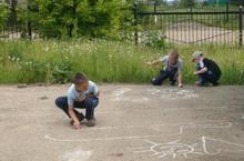 Кемнең рәсеме матуррак. Мәктәп яны лагерена йөрүче балалар асфальтта рәсем ясау буенча ярыш уздралар