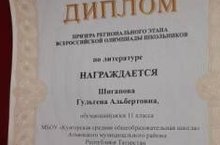 Диплом призера регионального этапа всероссийской олимпиады школьников по литературе 17.01.2022